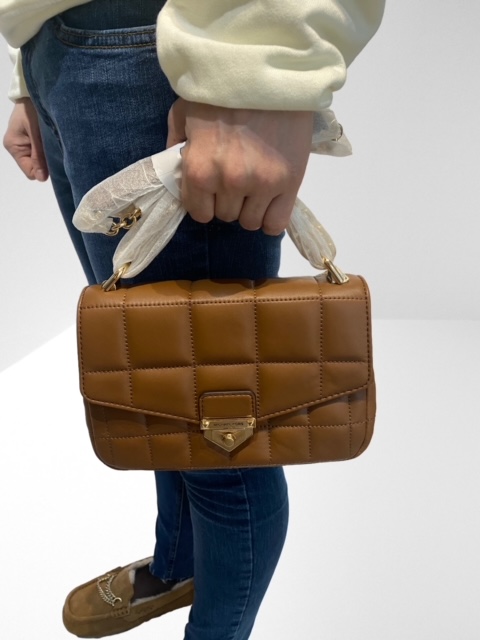 MICHAEL MICHAEL KORS BROWN QUILTED LEATHER SHOULDER BAG