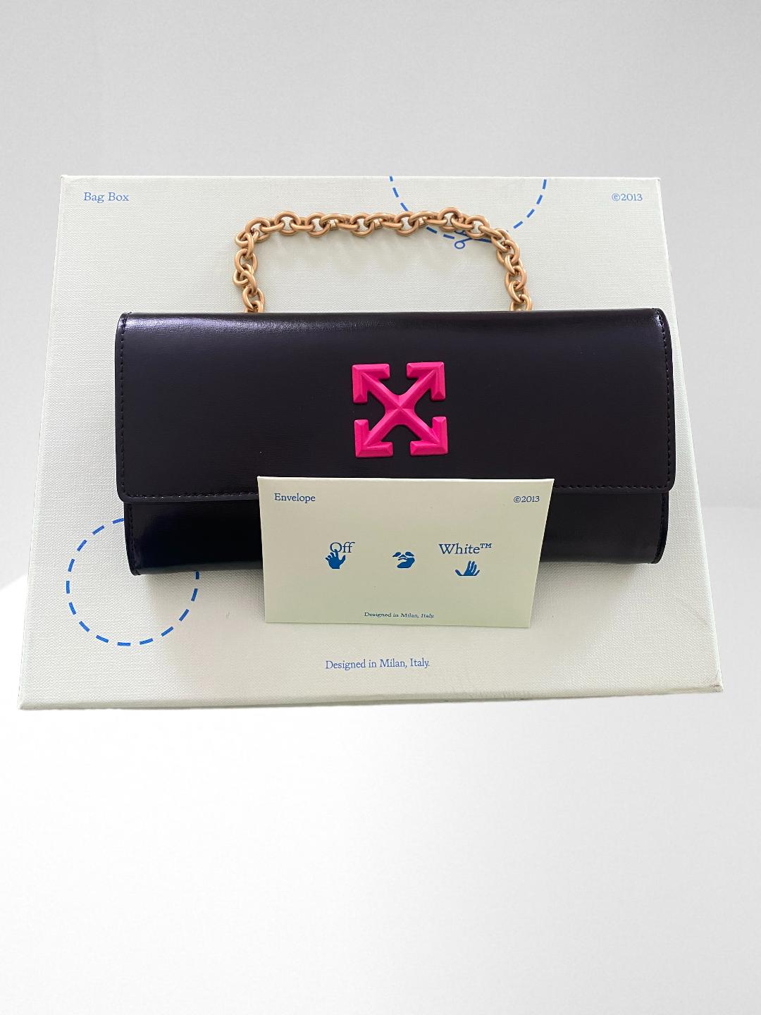 OFF WHITE BLACK JITNEY LEATHER WALLET (PINK LOGO)