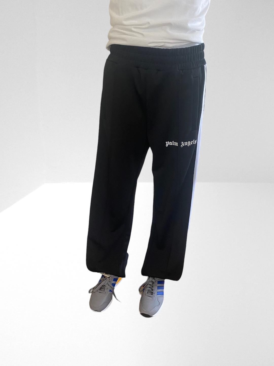 PALM ANGELS MENS CLASSIC BLACK & WHITE LOGO PRINT TRACKPANTS SIZE MEDIUM